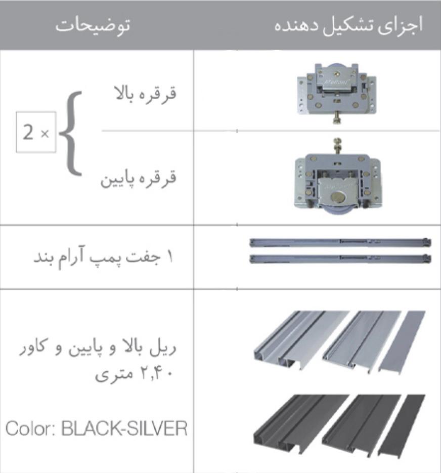 ریل بالا و پاببن و کاور 2.4 متری در رنگ های SILVER BLACK