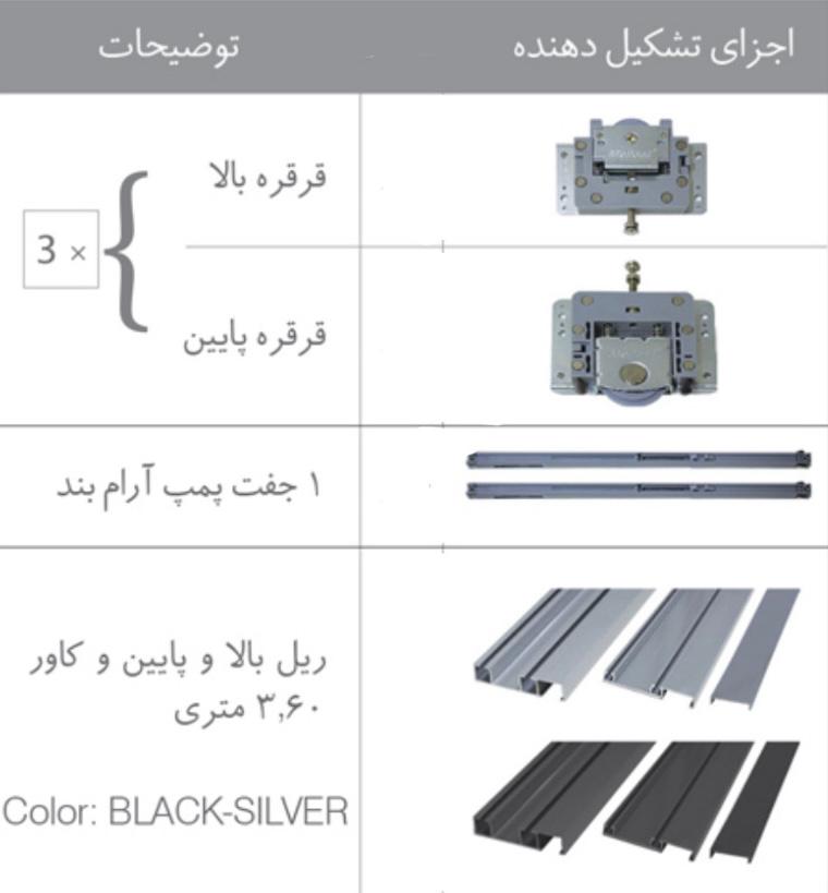 ریل بالا پایین و کاور دار 3.6 متری در رنگ SILVER BALCK
